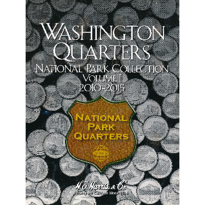 Альбом для монет США номиналом 25 центов серии «Национальные парки»(«National Park Quarters»). Ячейки для монет 2010-2015 годов выпуска. В альбоме предусмотрены ячейки для двух монетных дворов «P» и «D». Присутствует вкладыш с названиями парков и датой их основания.