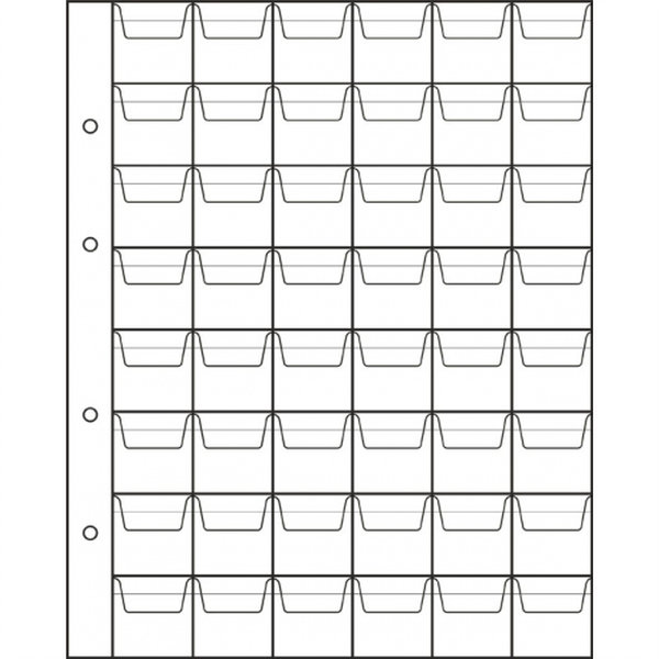 Лист для монет размером 200х250 (мм). 48 ячеек размером 30 х 30 мм с клапанами. Производство: Россия. Материал: пленка повышенной прозрачности. Подходит к папкам Optima.