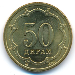 KM#6.1 Таджикистан, 50 дирам Латунь, 21 мм, 3.55 г Категории: Без тематики. Информация о выпуске (подробности в каталоге):
