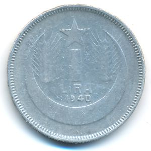 KM#869 Турция, 1 лира (1940 г.) 0.8300 Серебро, 12 г Категории: Без тематики. Исмет Инёню - второй президент Турецкой республики(1938-1950 г.г.), соратник и друг Ататюрка. Смотрите подробное описание типа в каталоге. Уточните информацию о наличии этого товара по телефону +7 495 925-96-98.